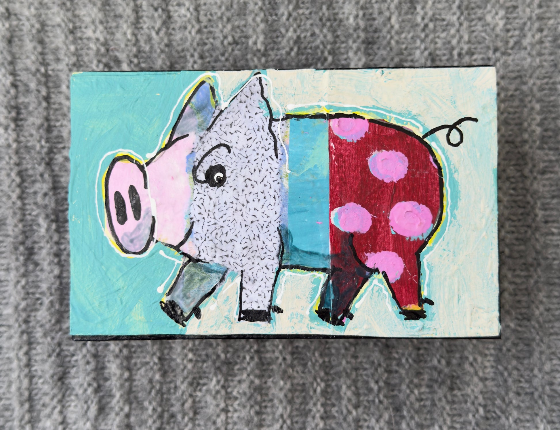 I make art and raise money for Odd Man Inn because I feel deeply connected to the animals. I grew up on a farm with pigs. They were part of my everyday life. As I got older, I realized just how smart, loving, and full of personality they are. They've shaped how I see compassion and our connection to all living beings. Supporting this cause also brings back special memories of the pigs I knew growing up.