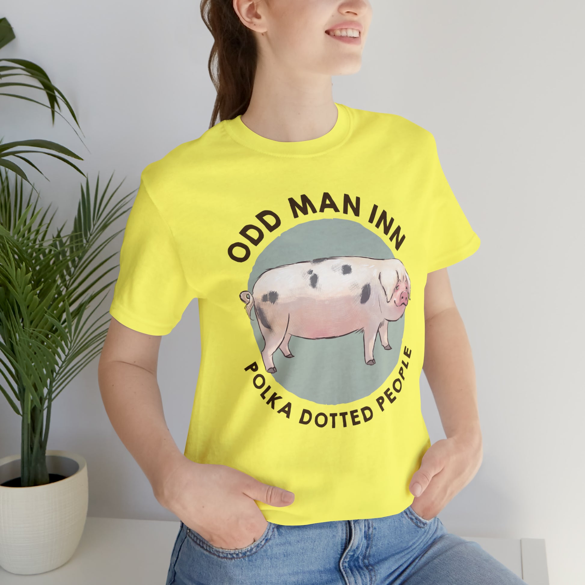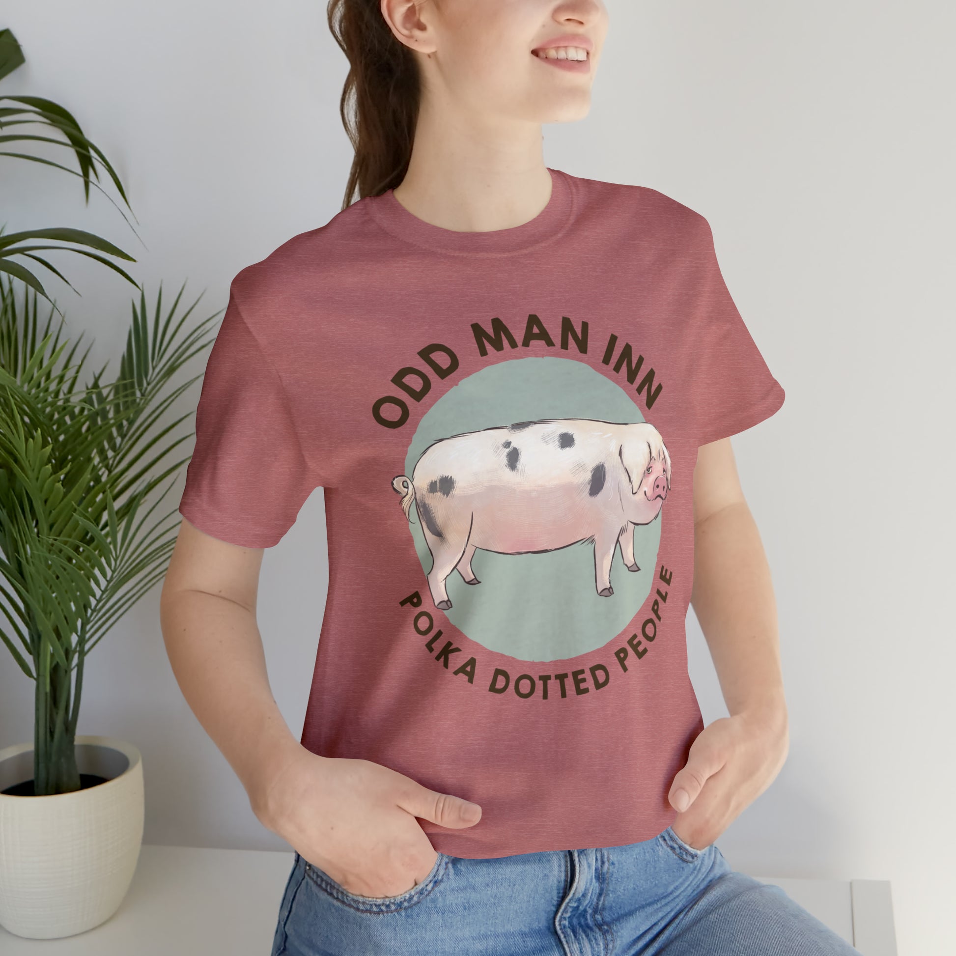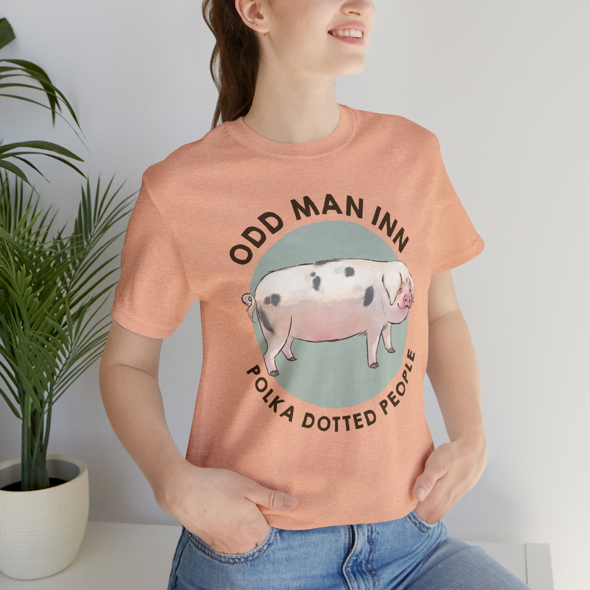 Show your love for Spot-tacular Oliver and his fellow Gloucestershire Old Spots People with this classic unisex jersey short-sleeve tee. Crafted from the softest 100% Airlume combed and ringspun cotton, this shirt features a commissioned illustration by Mor Spicer a talented vegan artist of BarkPoint Studio