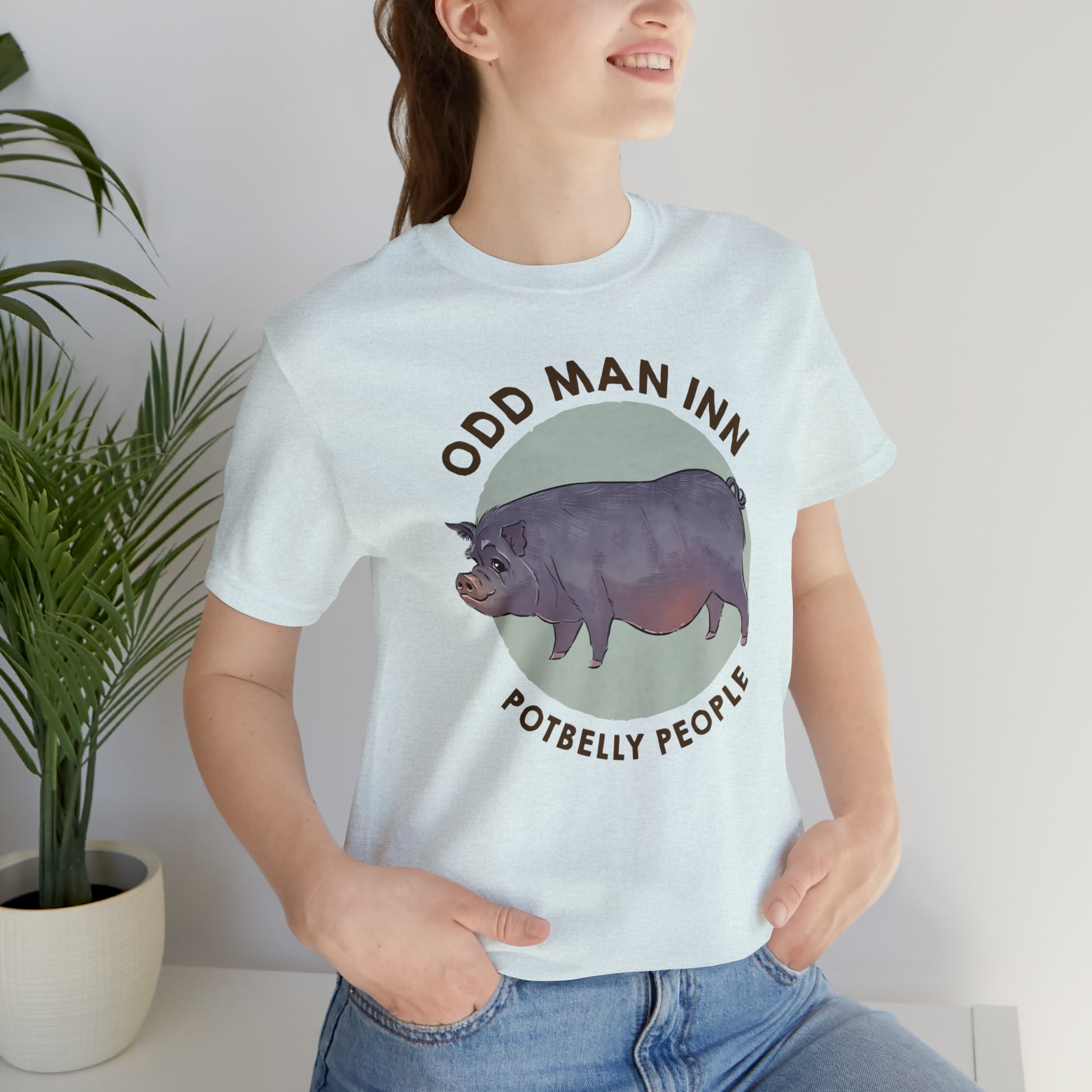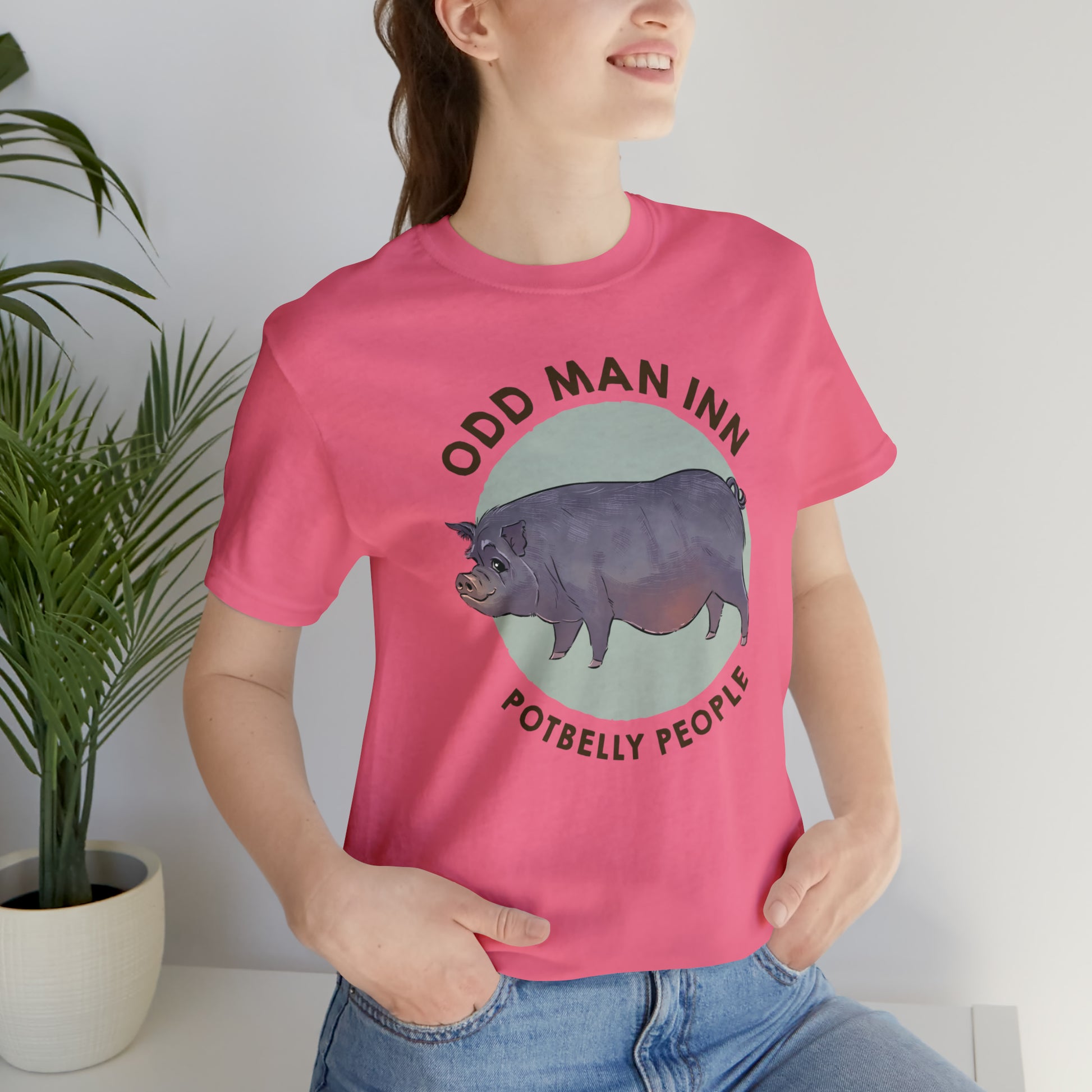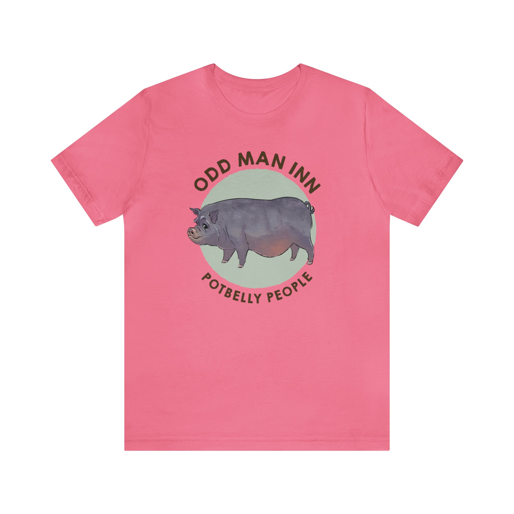 Show your love for Pot-Bellied pigs with this classic unisex jersey short-sleeve tee. Crafted from the softest 100% Airlume combed and ringspun cotton, this shirt features a commissioned illustration by Mor Spicer a talented vegan artist of BarkPoint Studio