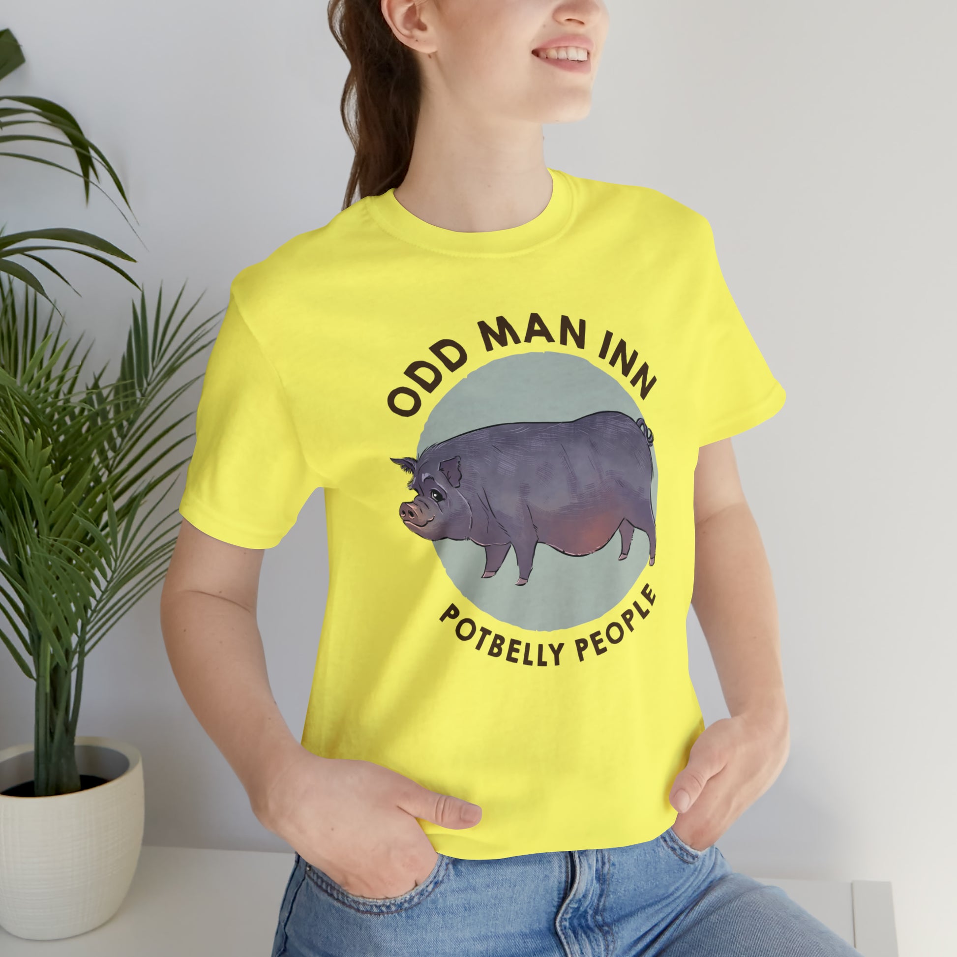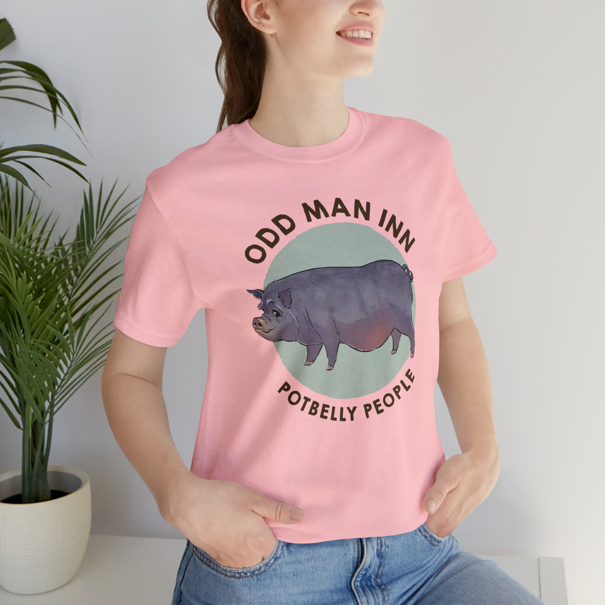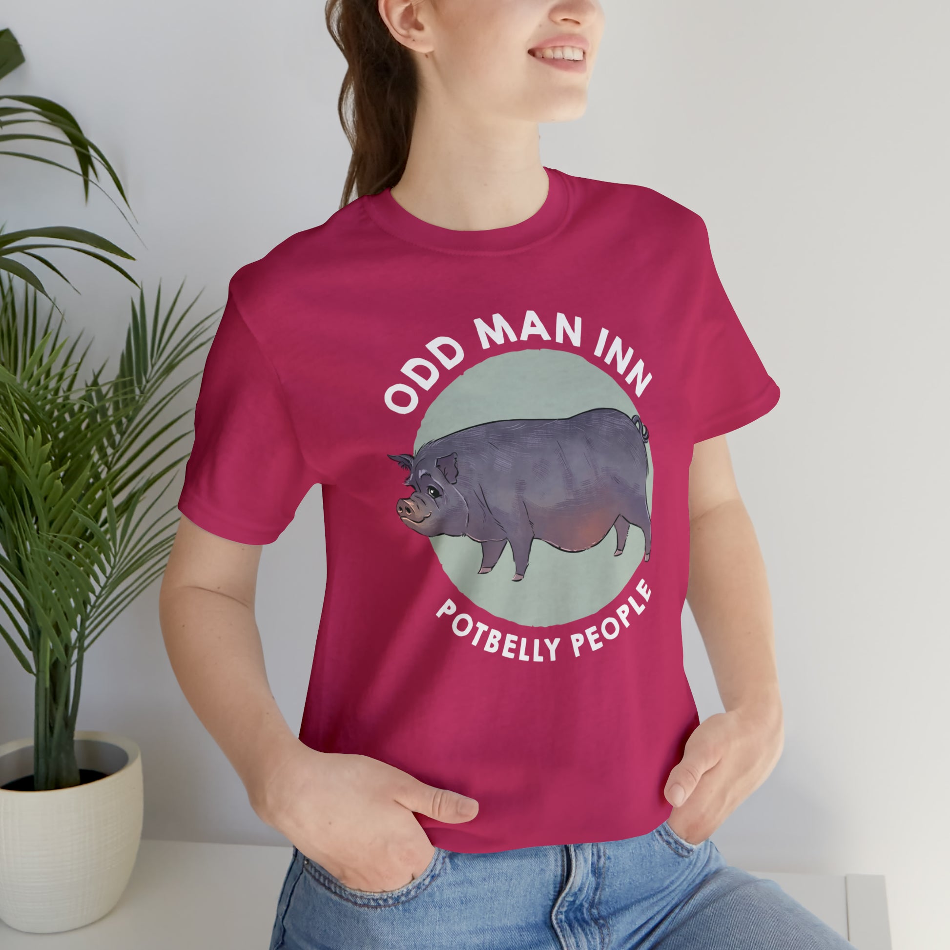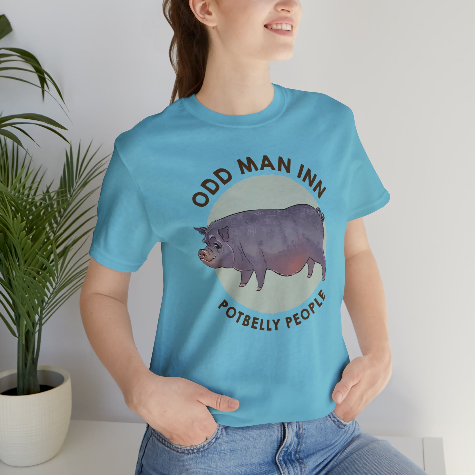 Show your love for Pot-Bellied pigs with this classic unisex jersey short-sleeve tee. Crafted from the softest 100% Airlume combed and ringspun cotton, this shirt features a commissioned illustration by Mor Spicer a talented vegan artist of BarkPoint Studio