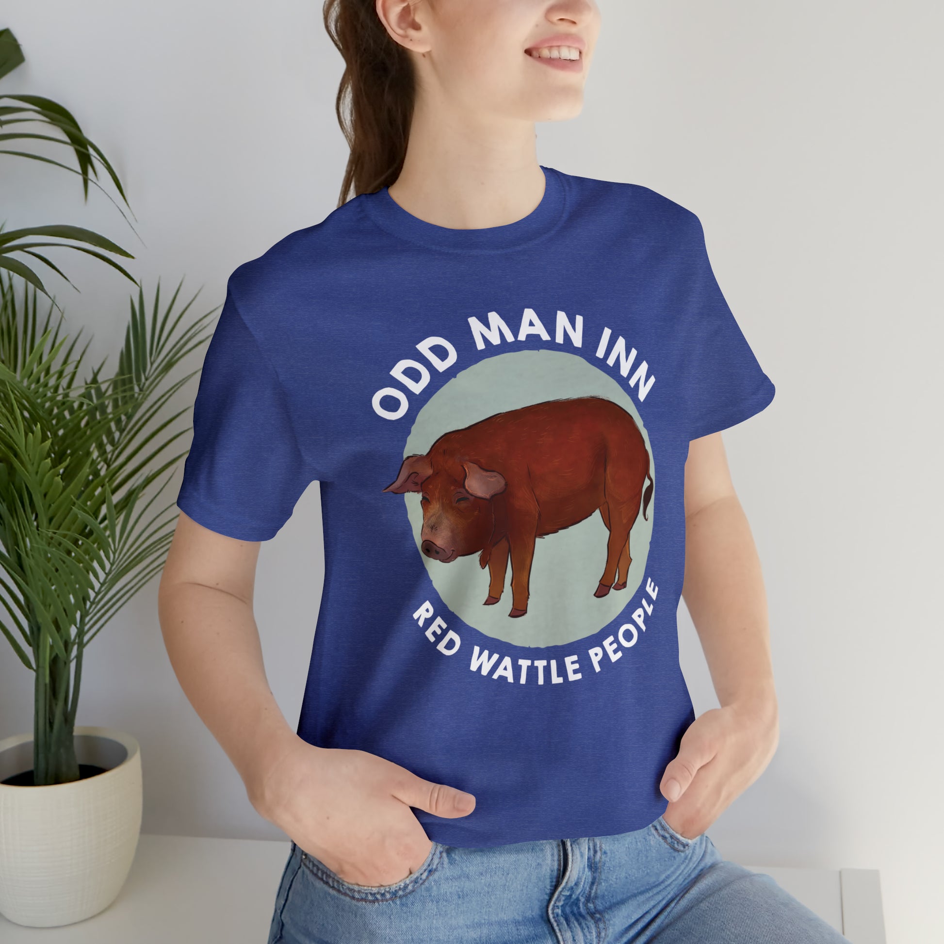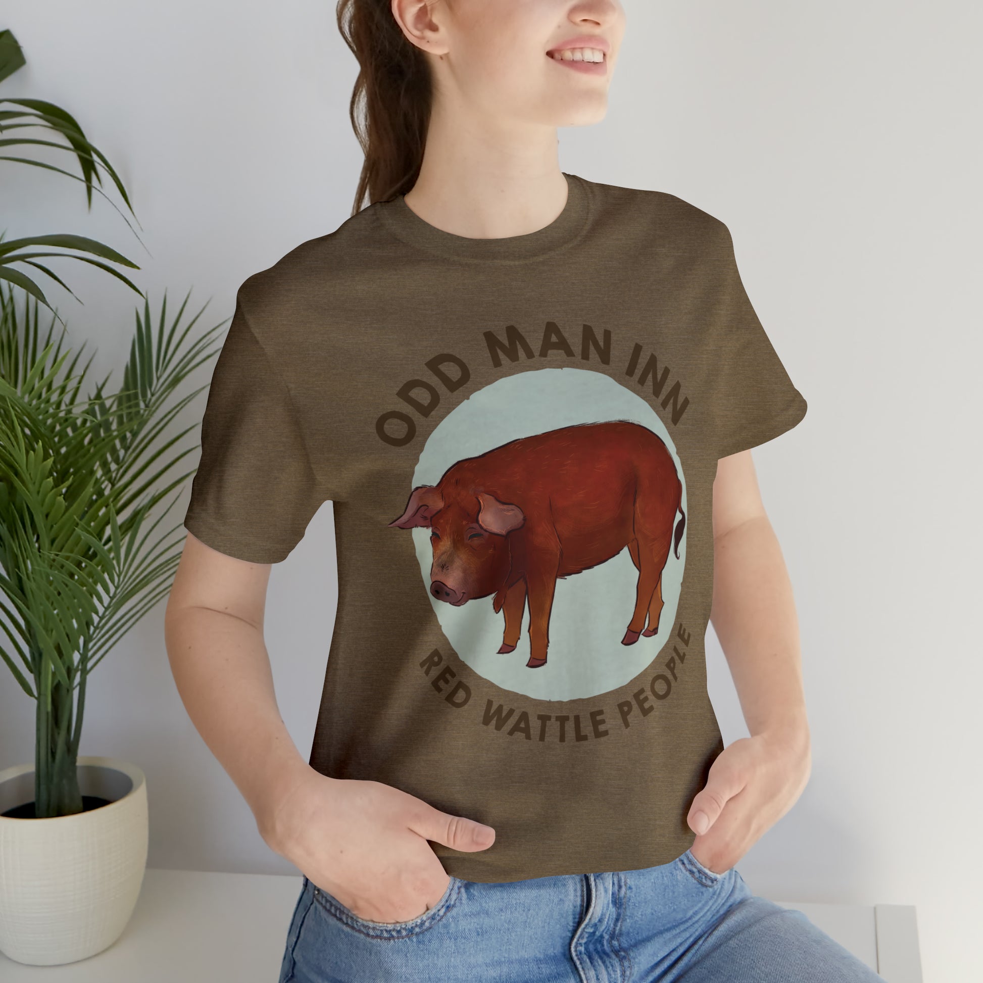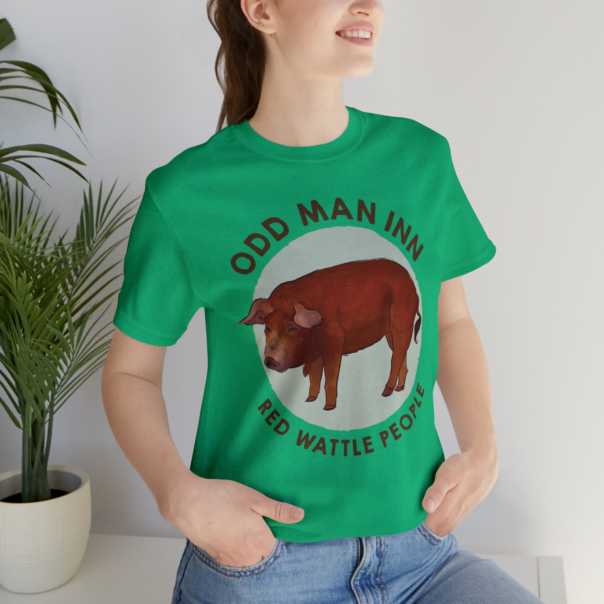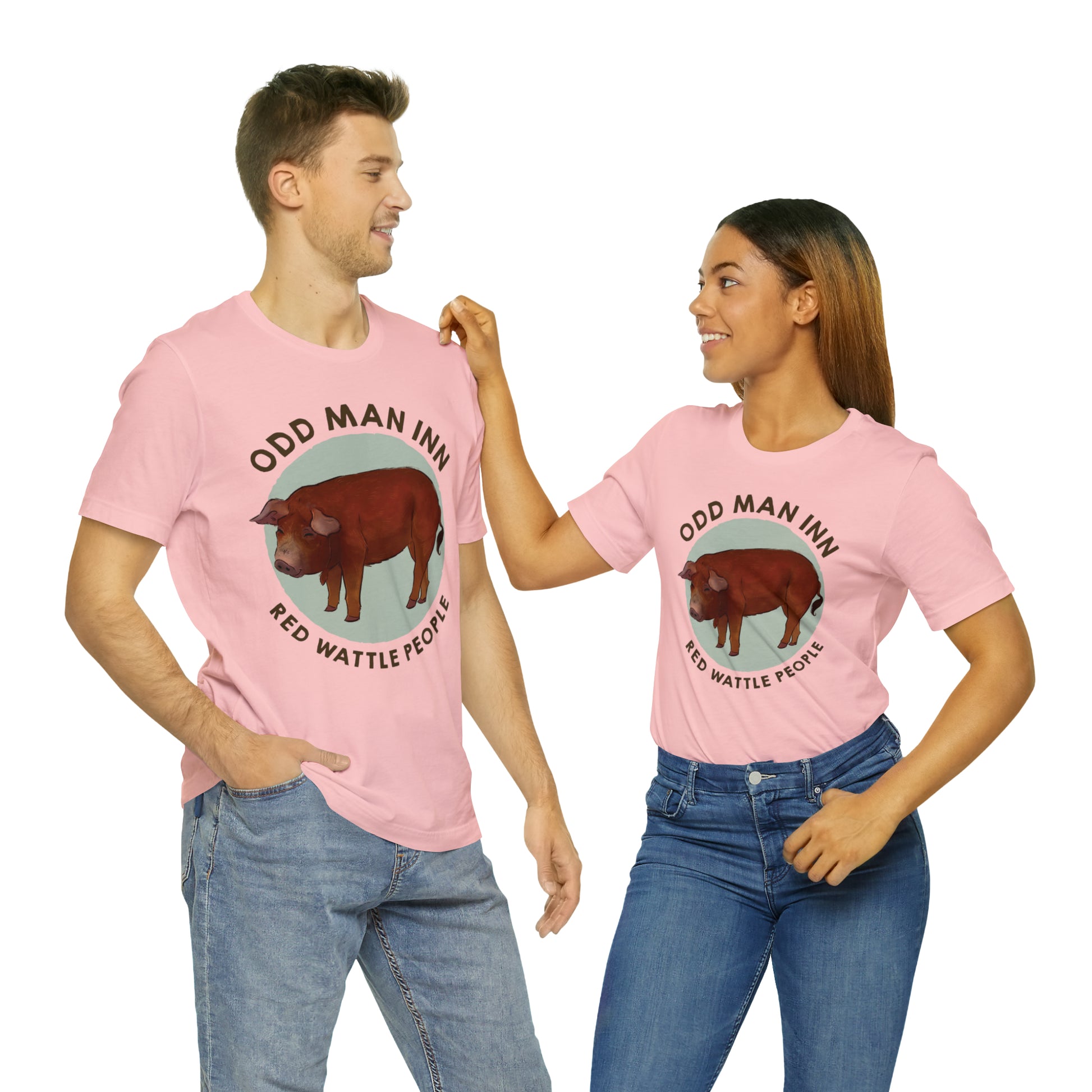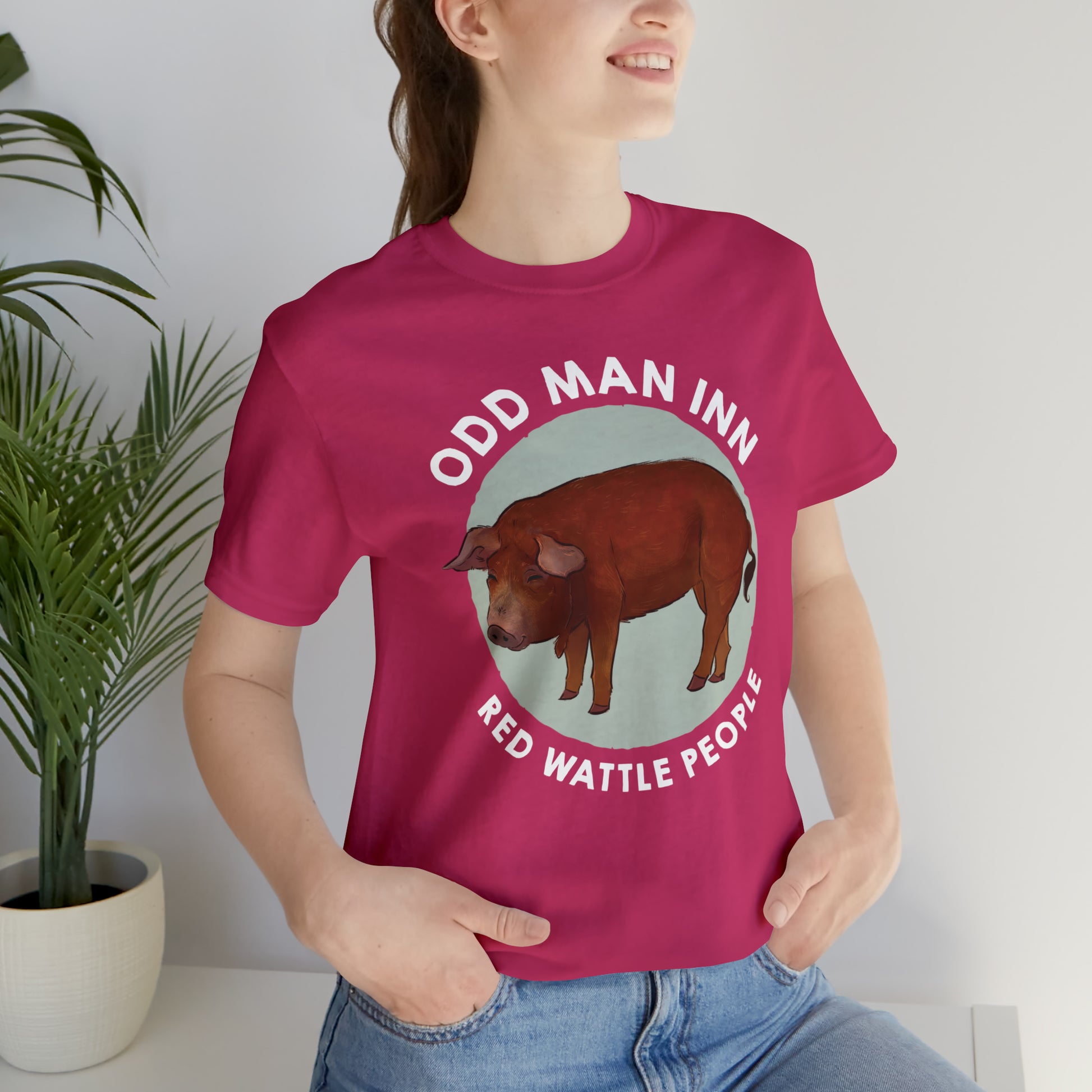 Show your love for Albert and his fellow Red Wattle People with this classic unisex jersey short-sleeve tee. Crafted from the softest 100% Airlume combed and ringspun cotton, this shirt features a commissioned illustration by Mor Spicer a talented vegan artist of BarkPoint Studio
