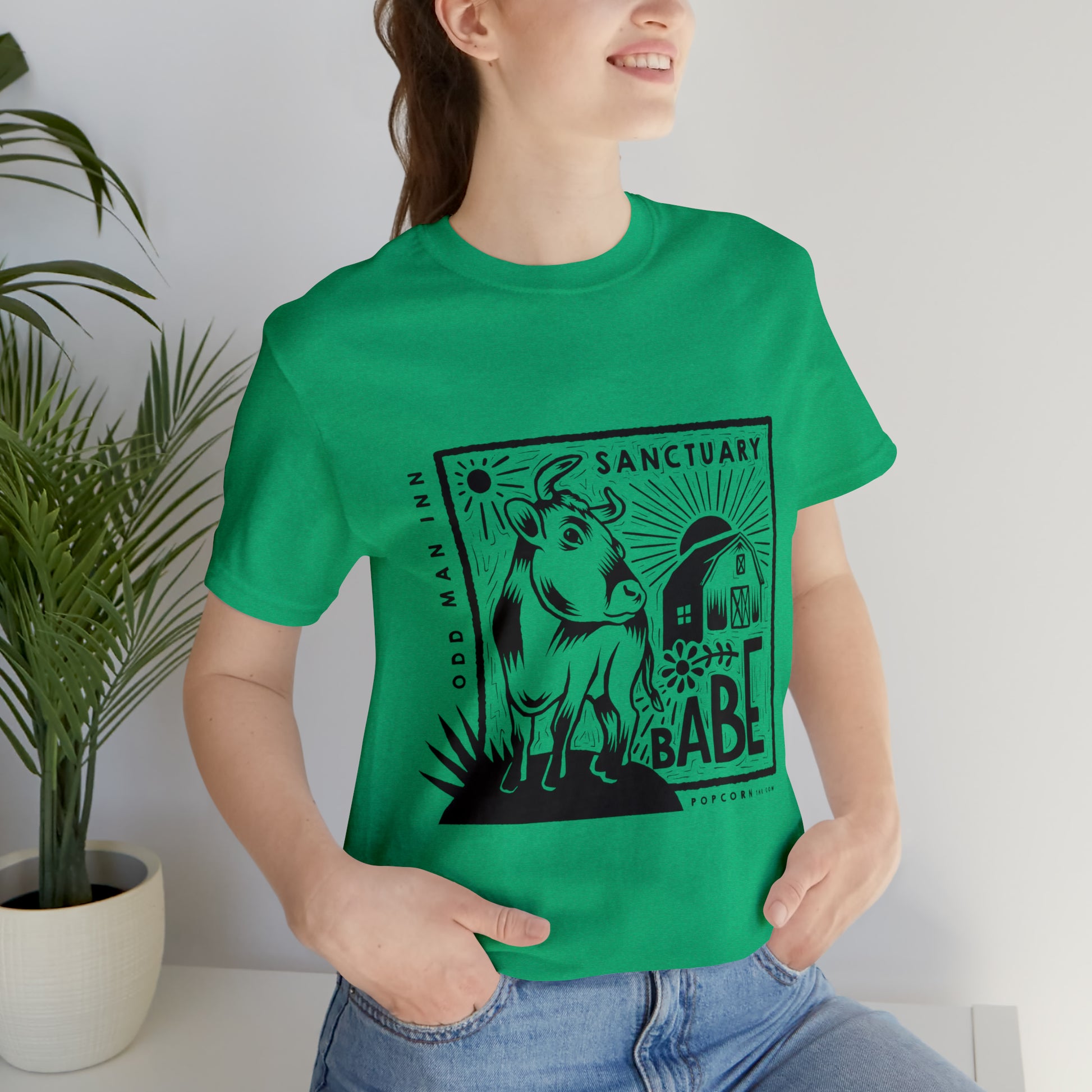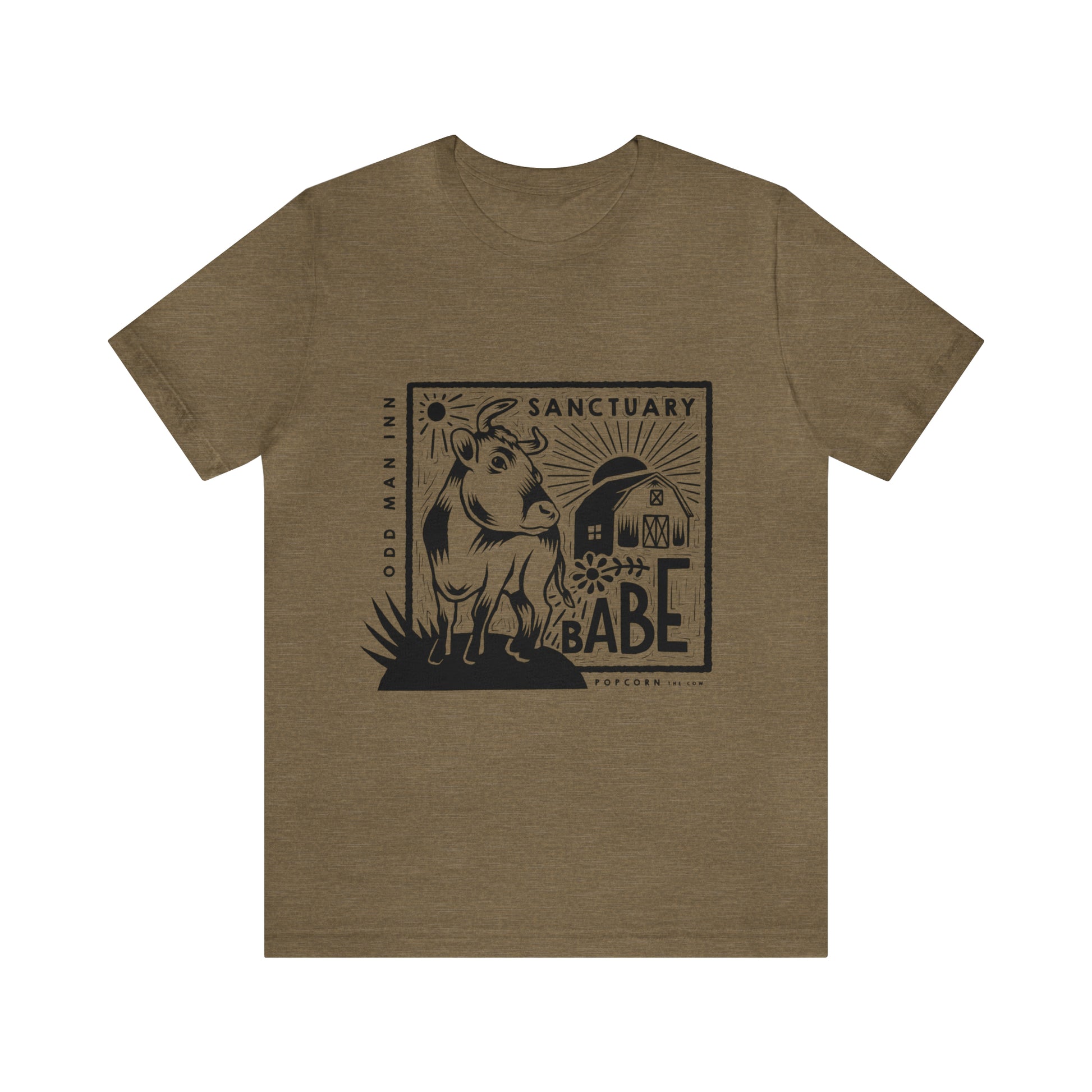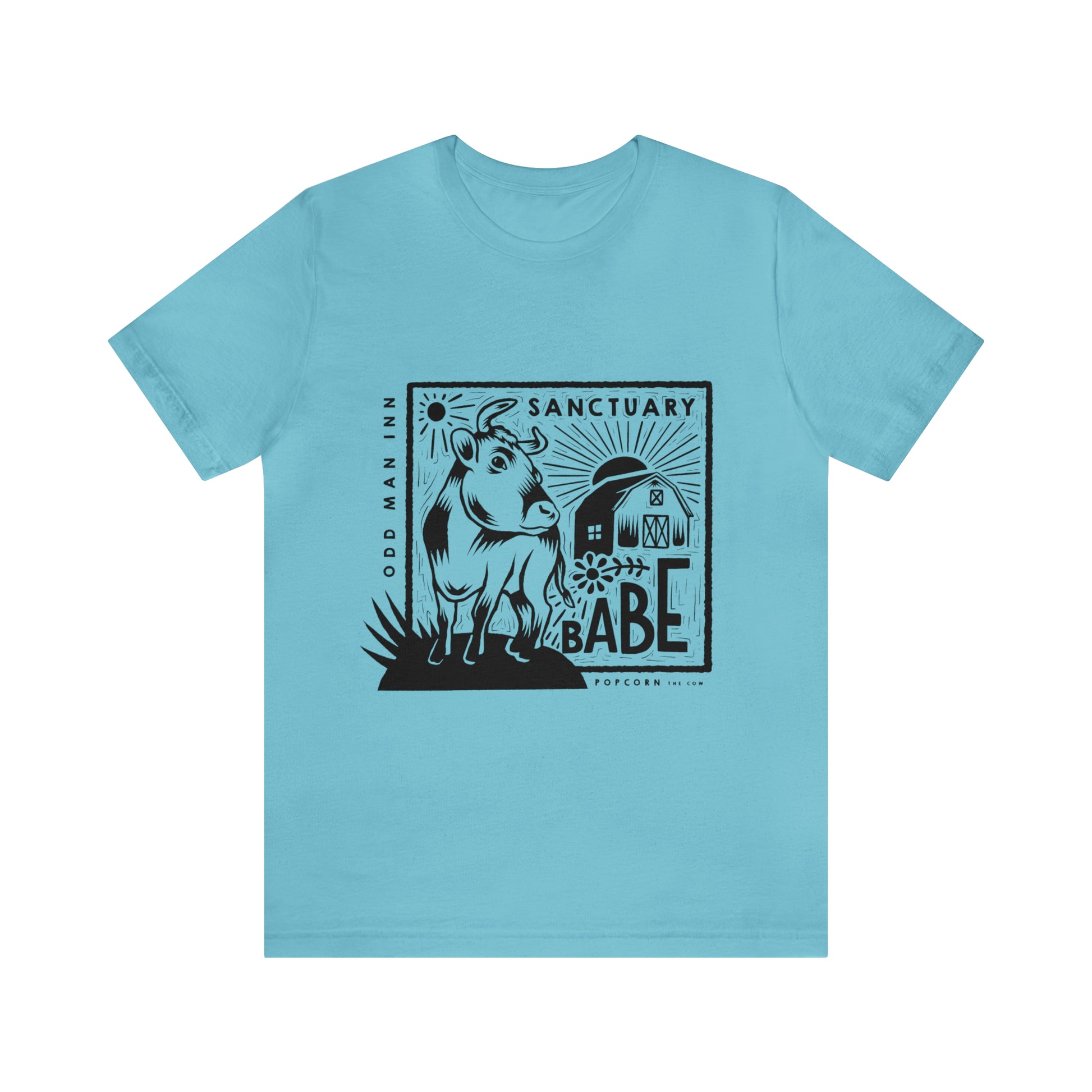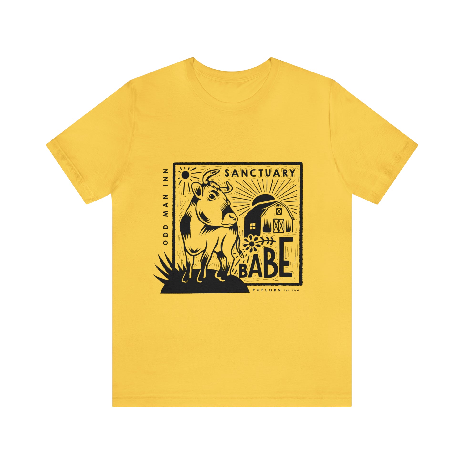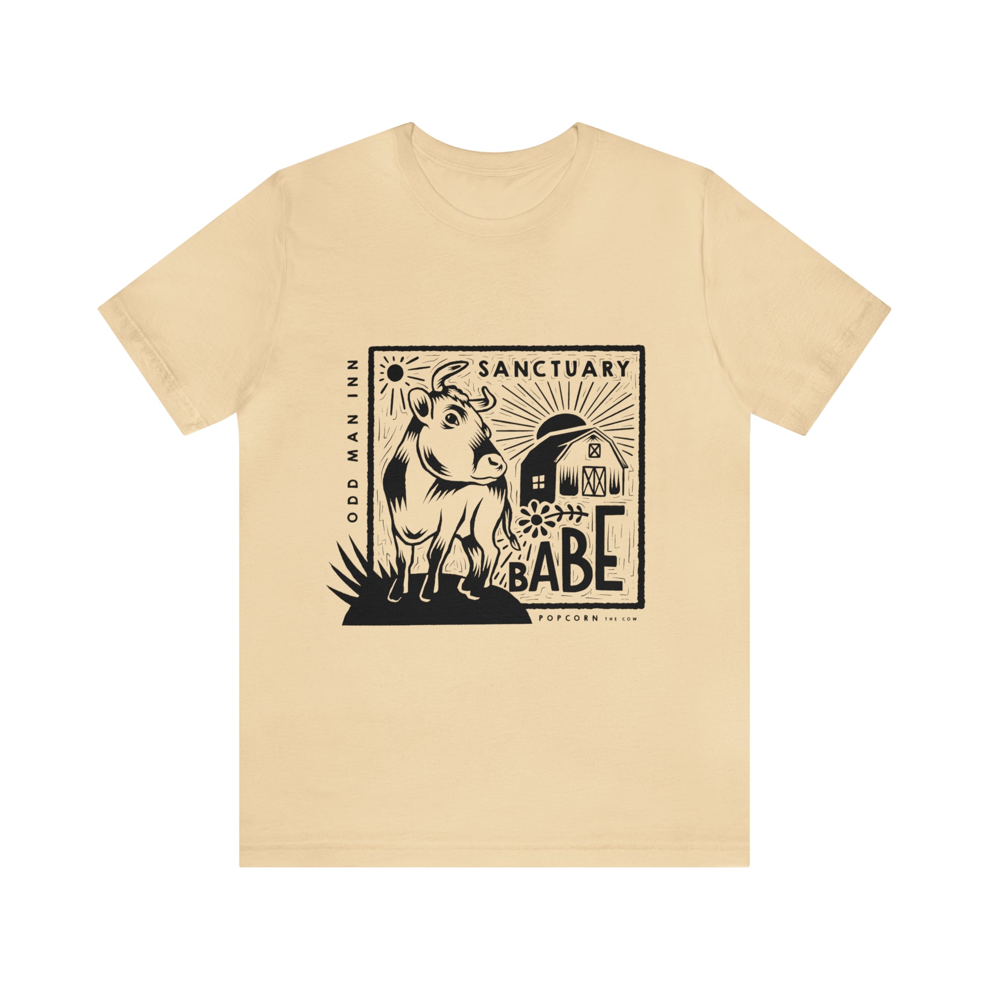 This classic unisex jersey short sleeve tee is designed to feel like a well-loved favorite. Made from soft cotton and an ideal choice for the summer, this tee displays original, commissioned artwork featuring Popcorn, created by Jade Strums, a talented vegan artist based in Portland, OR.